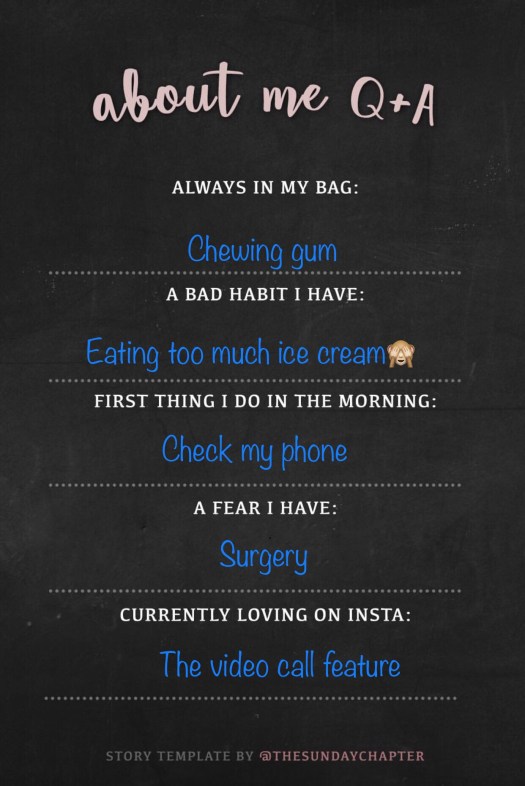 So I was scrolling through IG earlier and I stumbled on a very interesting blog, @Thesundaychapter she had this fun question and answer templates on her page and I thought to bring the party here wink